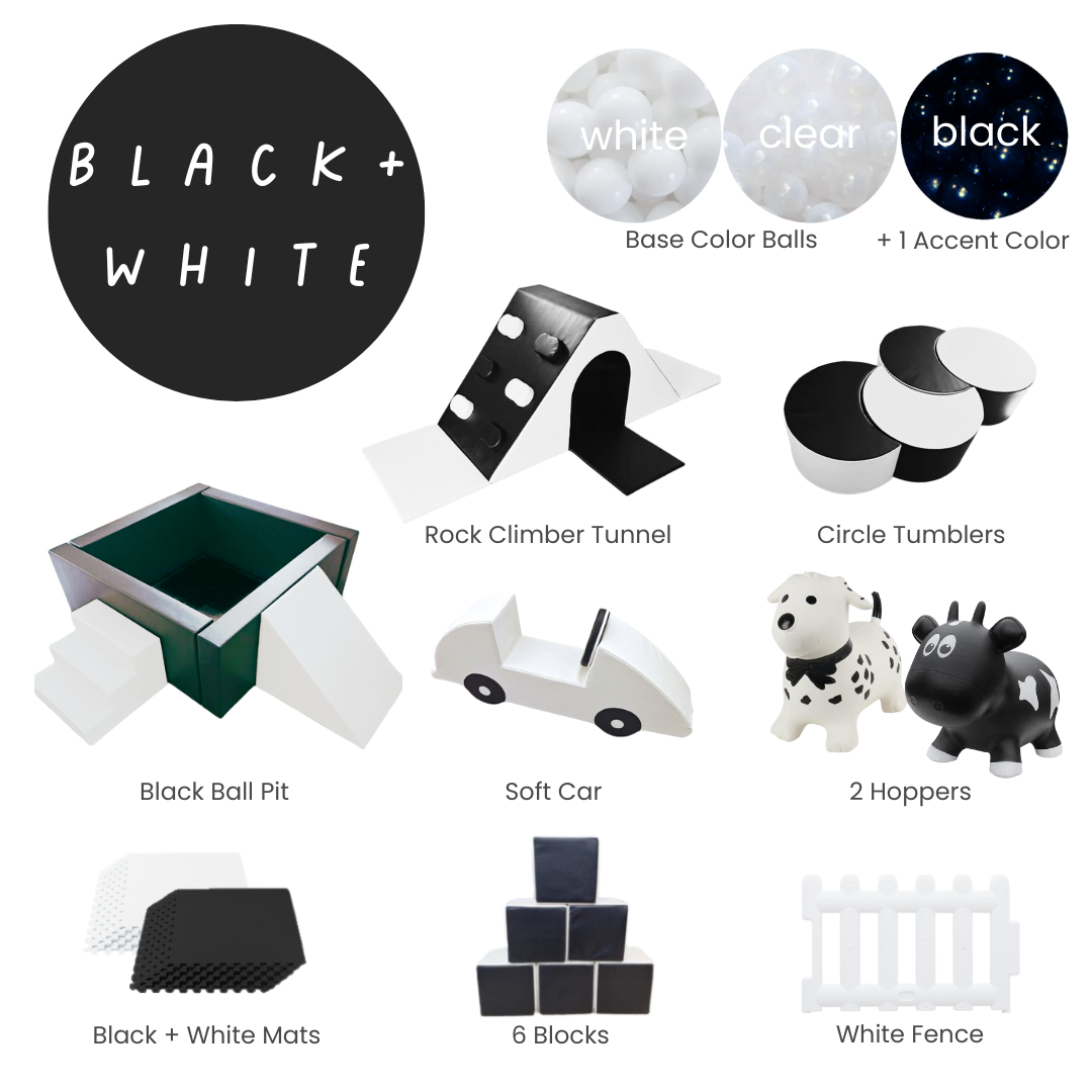 5ft Black Ball Pit + Balls (white + clear + black)